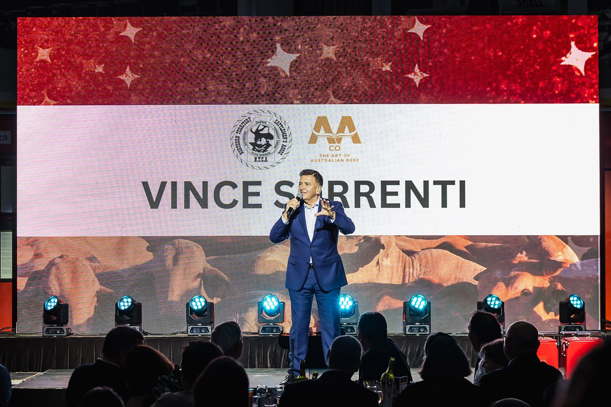 Comedian Vince Sorrenti entertaining guests during the NTCA Gala Dinner in Alice Springs. Photography by Ryan Ammon | Ammon Creative.